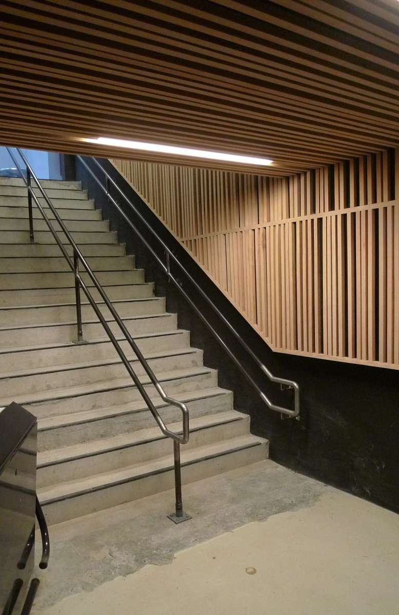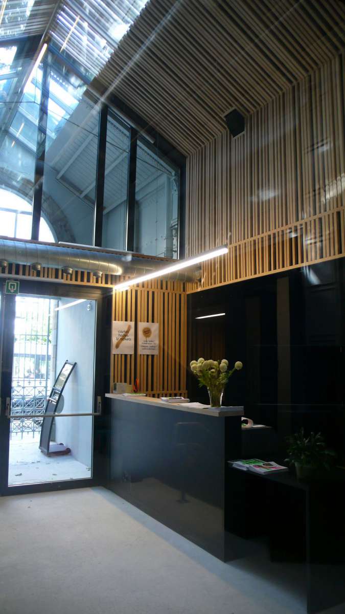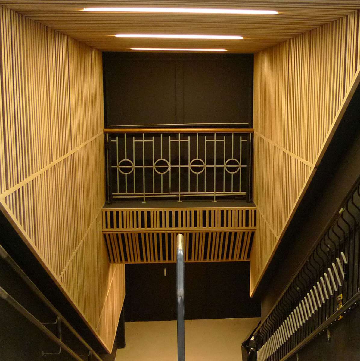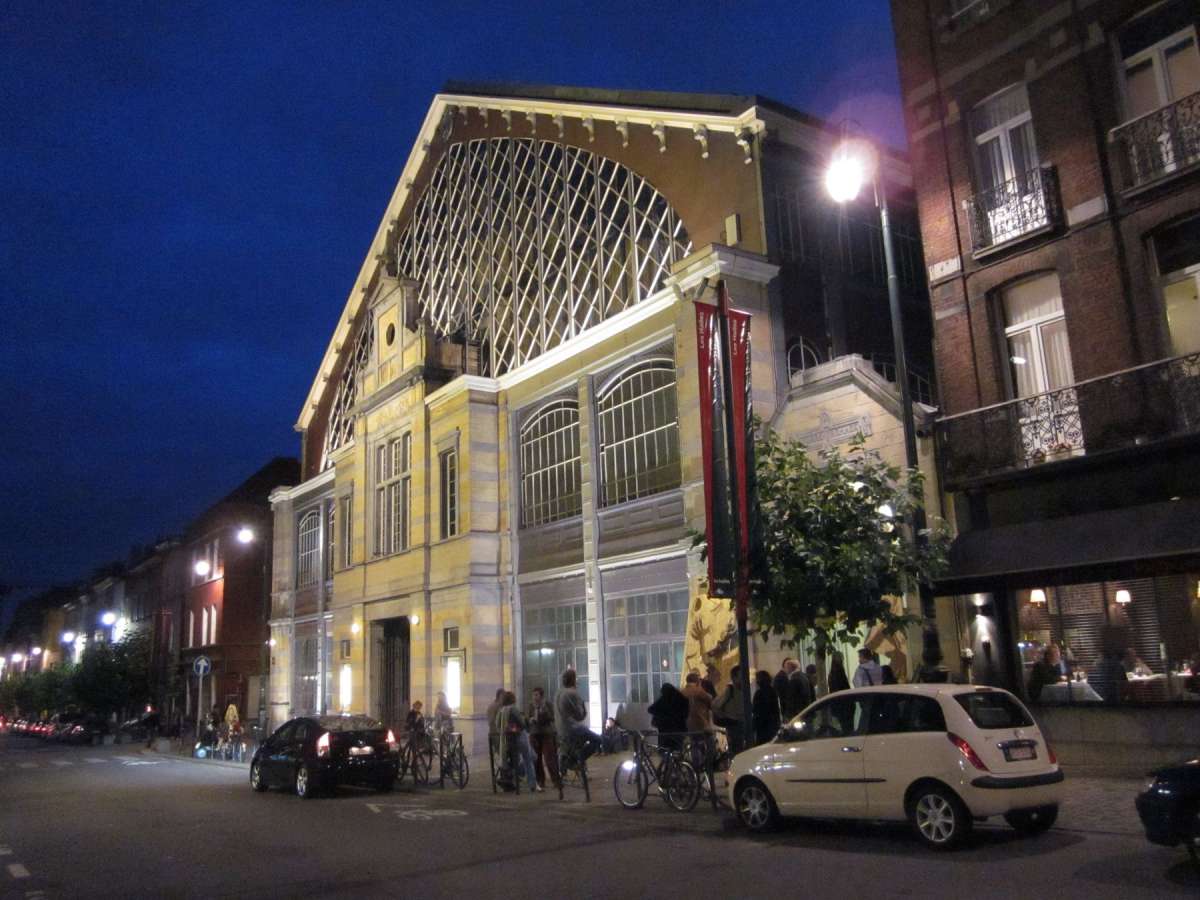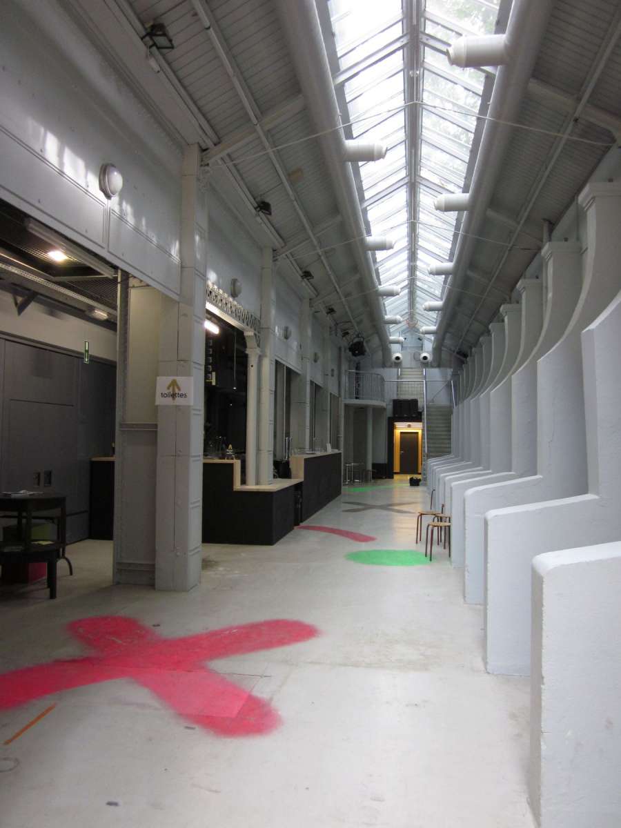 We created a corridor leading to the various event spaces, which have ‘airlocks’ to acoustically isolate simultaneous performances. Known as La Ruelle, this covered side-street extends the arts centre into the public sphere, just as Les Halles, – the market hall – was originally built as an extension of this former commercial area. Once rather forgotten during the day, the neighbourhood now constantly buzzes with social and cultural life. La Ruelle has re-established the links between the surrounding streets and neighbourhoods, connecting them with interior and hidden spaces. To reopen this passageway, we needed to uncover it, as the glass roof had been obscured. In order to incorporate art into the fabric of the building, we worked closely with Joelle Tuerlinckx. Much of her contribution is invisible and inaudible, but through our collaboration she has made her mark on the building. Her one visible artwork puts the focus on the ‘non-place’; its location on the street reinforces La Ruelle's opening statement and echoes its twin, which is located in Palestine. Her integrative approach brings Les Halles into the street and offers it to the world.