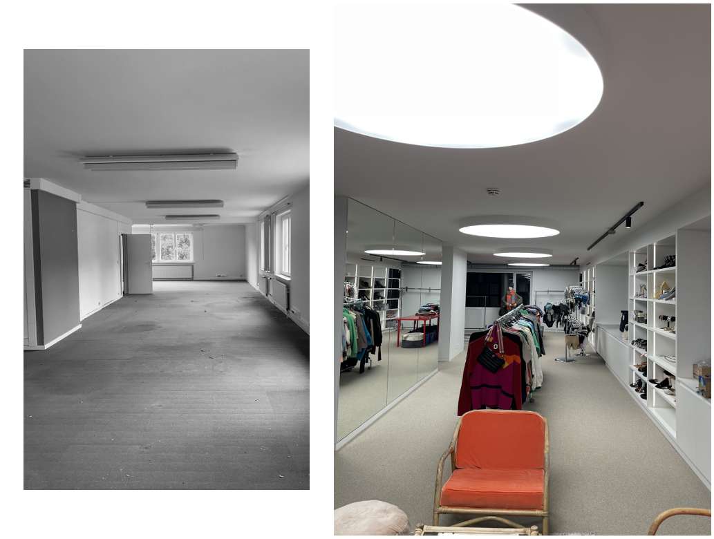 Behind its revitalized skin, the space welcomes an NGO devoted to young women leaving institutional care, stepping for the first time into independence. Here, they find a haven — a place to learn, to grow, to prepare for the life ahead. A kitchen teaches how to nourish oneself; classrooms open to dialogue; a showroom and fitting rooms become spaces of self-discovery; studios invite dance, art, and introspection. Each room writes a new chapter of emancipation. Spaces are conceived as instruments — simple, luminous, open — allowing life to unfold freely. Faced with the constraints of time and regulation, the project seeks precision and restraint: to transform without excess, to renew without erasure. Energy flows are reimagined, optimized, yet achieved without the cumbersome weight of a building permit — a necessity given the urgency of those who will soon call this place their own. At the heart of the project, a small garden extends from the kitchen and dining area, offering intimacy and retreat. Above, a rooftop terrace opens to the sky — a suspended common ground for conversation, laughter, and hope. In its quiet presence, the building rediscovers its essence: to shelter transition — between adolescence and adulthood, dependence and freedom. Lancaster becomes a gentle framework, a neutral canvas on which each young woman may project her own color, her own future.
