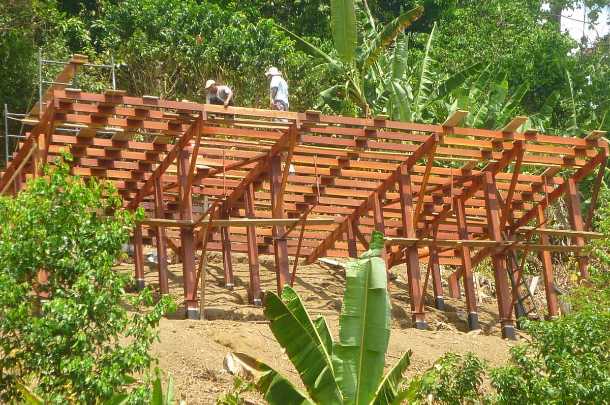 Anything that could not be sourced locally in this back country corner of Costa Rica, such as toilets or solar panels, was brought in by shipping container. A shipping container that has remained on site and now serves as storage for surf boards and for the technology needed to support the photovoltaic panels. Overlooking the ocean, this protected perch offers a comfortable shelter which is completely open to the surrounding natural environment and is without the “normal” amenities. The entire project is remarkable in terms of its carbon footprint. From the concept stage, and throughout the building works, AWAA made only two visits to the site - once at the design stage and once at provisional handover. One of the clients splits his time between San José, Tamarindo and Osa, where he works as a pilot for a coastal conservation and marine monitoring project. His timetable meant he was able to follow the construction works and report progress to AWAA via the internet, enabling us to supervise work remotely. We must remember that this ‘surf shack’ is completely self-sufficient. It’s not connected to the grid: electricity is produced by solar panels and water is pumped from a spring. Its mini sewage treatment plant and its floating construction, devoid of invasive foundations, have enabled us to build a dwelling that is a tropical grail of exotic, comfortable and exquisitely integrated into its environment. Pura vida.