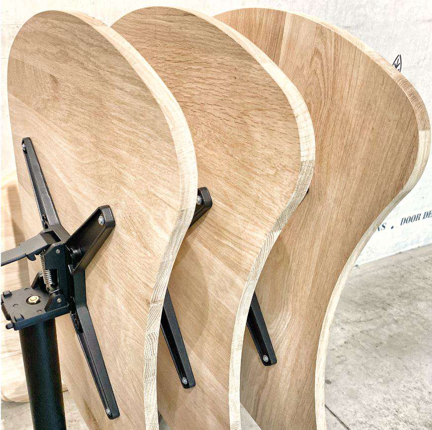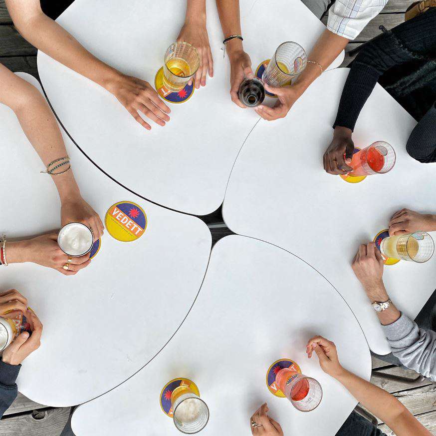 This playful and multifunctional aspect offers a wealth of possibilities for the private or the public sector, for purposes as diverse as bars, restaurants, meeting or study rooms, office, classrooms, dining rooms ... Depending on the selected base, the top can be adapted as a low or high table and made from a wide variety of materials ranging from natural wood to recycled materials.