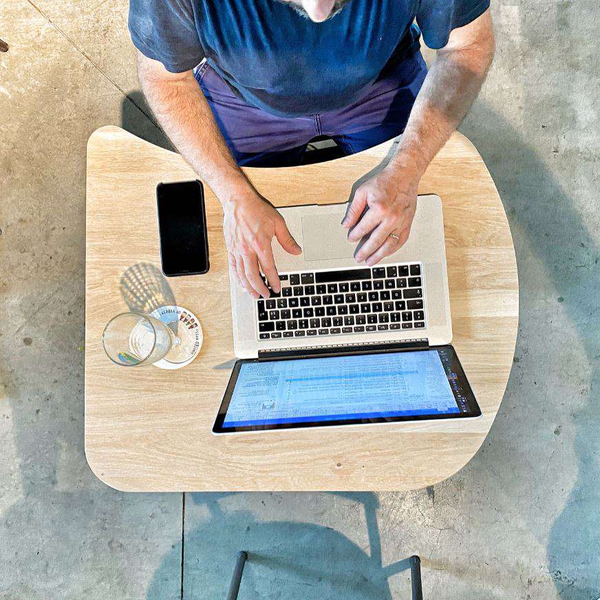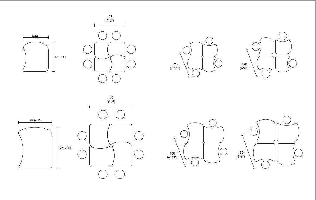 The C-19 table is an organic shaped table created to be assembled in different configurations to respond to different situations of proximity or distance. The convex side enhances the proximity of the users while offering the required social distance in other configurations. By assembling 4 elements, they can form a square table for 8 people or an “open petal” table for 4 people. These are two examples of configurations among an infinite number of possibilities. Its convex side corresponding to its concave side, its shape is generated by an interlocking principle and allows a lot of creativity in terms of layout.