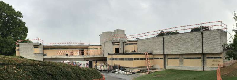 The challenge was considerable. The facades could not be touched, as the cladding stones could not be altered. The unique surface work and patina developed over time prevented any duplication, ensuring continuity. The concrete slabs were calculated at the time for their utmost thinness, presenting a significant structural challenge and a clear impossibility to attach anything to them.