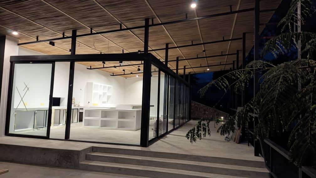 The earth excavated for the foundations was transformed into bricks directly on site. Local beeswax was melted and patiently worked to finish the concrete floors. The lamps were handcrafted by Rwandan artisans; the window frames shaped by a local ironworker. Each piece bears the signature of the region’s craftspeople and the quiet strength of their know-how. Scattered across the hill, the bungalows come in different shapes and sizes, welcoming couples, families, or groups of friends. At the top of the site, the main house overlooks the garden, the cluster of bungalows, and the shimmering expanse of Lake Kivu. This building is the heart of Kibuye House—the place where guests meet, share meals, exchange stories, and simply enjoy the pleasure of being together. As with our project El Chante in Costa Rica, the structures are placed with care throughout the site, preserving the spirit of the place, the lush vegetation, and the privacy of every visitor. Kibuye House is a project of sustainable simplicity, where every design decision remains intentionally modest so that local builders can achieve it beautifully, without imposing construction methods born in other continents. The elegance of the place comes not from complexity, but from harmony. Open-air structures create natural ventilation and cooling, embracing the Rwandan climate and celebrating a way of life that flows gently between inside and outside. In Kibuye, no place offers such an experience—one where simplicity meets refinement, where luxury becomes synonymous with authenticity and ecological awareness. Kibuye House introduces a new form of sustainable, understated luxury on the shores of Lake Kivu: a retreat for weekend travellers and holiday guests who seek to immerse themselves fully in nature, breathe deeply, slow down, and reconnect with the beauty of this remarkable landscape.