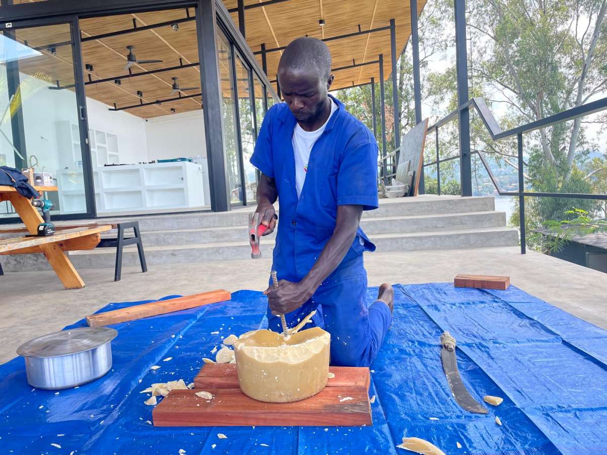 The earth excavated for the foundations was transformed into bricks directly on site. Local beeswax was melted and patiently worked to finish the concrete floors. The lamps were handcrafted by Rwandan artisans; the window frames shaped by a local ironworker. Each piece bears the signature of the region’s craftspeople and the quiet strength of their know-how. Scattered across the hill, the bungalows come in different shapes and sizes, welcoming couples, families, or groups of friends. At the top of the site, the main house overlooks the garden, the cluster of bungalows, and the shimmering expanse of Lake Kivu. This building is the heart of Kibuye House—the place where guests meet, share meals, exchange stories, and simply enjoy the pleasure of being together. As with our project El Chante in Costa Rica, the structures are placed with care throughout the site, preserving the spirit of the place, the lush vegetation, and the privacy of every visitor. Kibuye House is a project of sustainable simplicity, where every design decision remains intentionally modest so that local builders can achieve it beautifully, without imposing construction methods born in other continents. The elegance of the place comes not from complexity, but from harmony. Open-air structures create natural ventilation and cooling, embracing the Rwandan climate and celebrating a way of life that flows gently between inside and outside. In Kibuye, no place offers such an experience—one where simplicity meets refinement, where luxury becomes synonymous with authenticity and ecological awareness. Kibuye House introduces a new form of sustainable, understated luxury on the shores of Lake Kivu: a retreat for weekend travellers and holiday guests who seek to immerse themselves fully in nature, breathe deeply, slow down, and reconnect with the beauty of this remarkable landscape.
